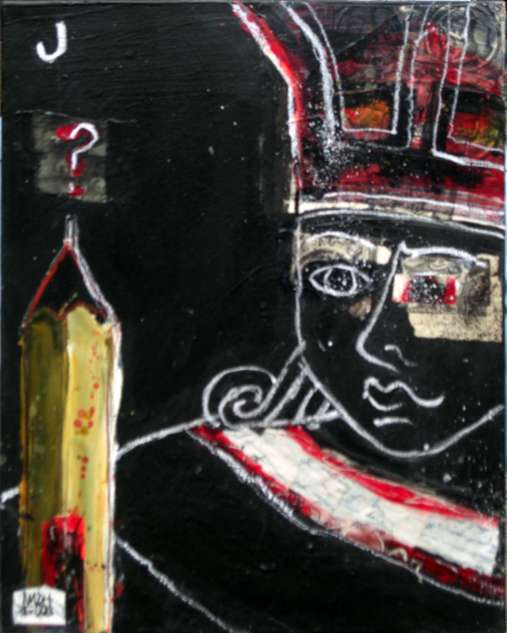 Jack of Question Marks August 31, 2010August 4, 2014 | currywright 18 x 14 inches mixed media on canvas available, please inquire Share this:Share Click to share on Pinterest (Opens in new window) Pinterest Like Loading...