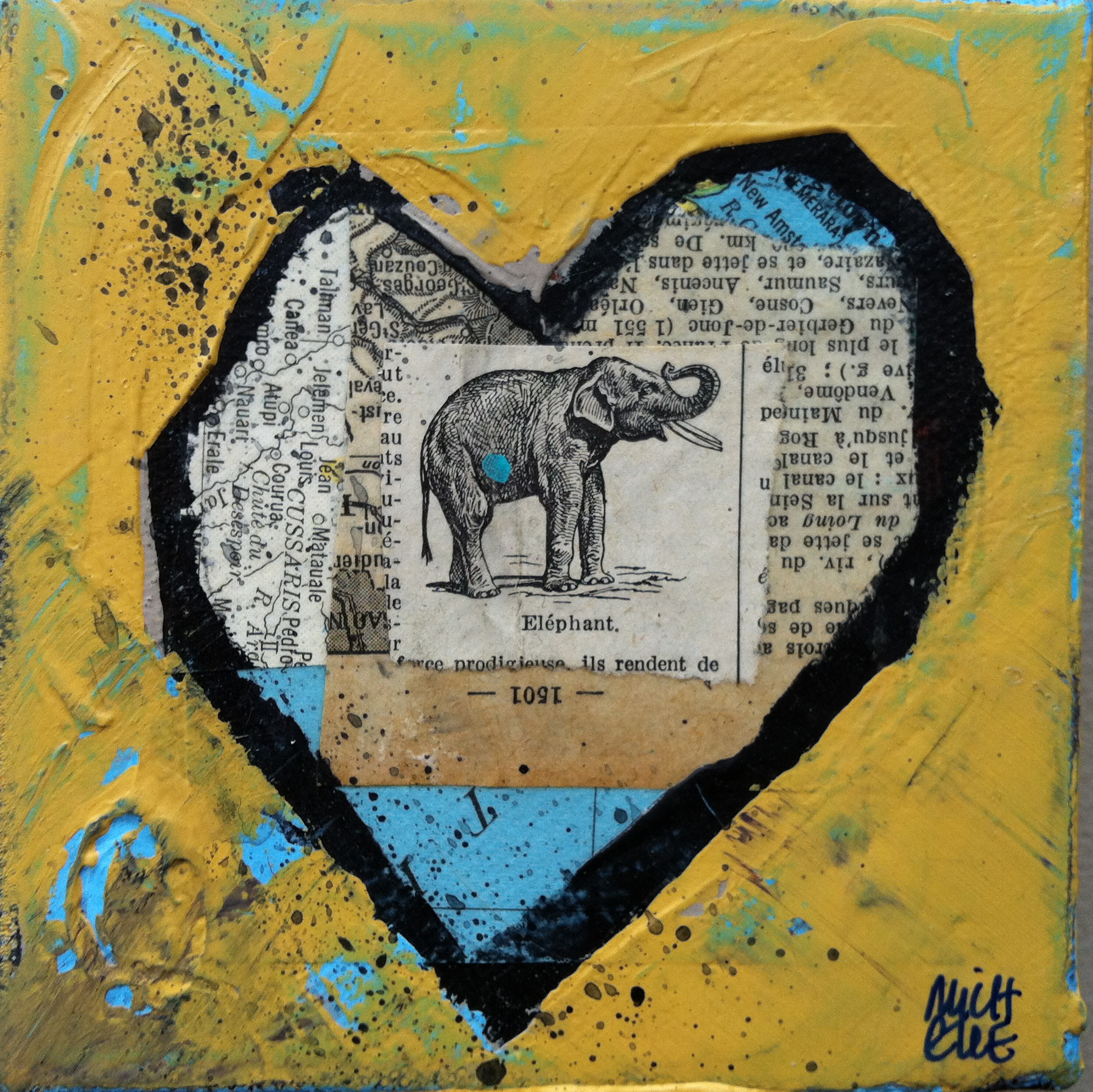 Elephant Never Forgets Heart December 6, 2011February 7, 2012 | currywright mixed media and vintage paper on canvas 4 x 4 inches purchase through SOLD Share this:Share Click to share on Pinterest (Opens in new window) Pinterest Like Loading...