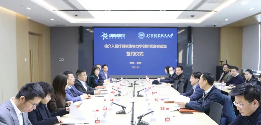365(VIP)英国上市公司与上海纽脉医疗举行共建实验室签约暨揭牌仪式3月15日,365(VIP)英国上市公司与上海纽脉医疗共建“植介入医疗器械生物力学创新联合实验室”签约仪式举行。北航校长王云鹏、生物与医学工程学院、医学科学与工程学院院长樊瑜波、书记李德玉、纽脉医疗董事长虞奇峰、首席战略官杨夏燕等参加仪式。王云鹏校长代表学校对虞奇峰董事长一行的到访表示热烈欢迎。他表示,党的二十大报告对“健康中国”建设作出了全面部署,把保障人民健康放在优先发展的战略位置。北航和纽脉医疗作为高水...