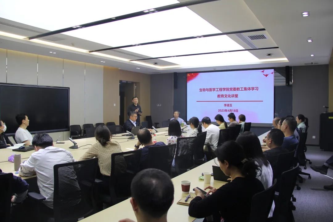 “三个讲堂”系列活动|面向专业核心能力提升的医工融合课程群建设2023年4月18日,生物与医学工程学院党委结合学习贯彻习近平新时代中国特色社会主义思想主题教育,开展“名家论坛”、“教育文化讲堂”、“学术沙龙”特色活动,生物与医学工程学院、医学科学与工程学院党委书记李德玉教授做了题为“面向专业核心能力提升的医工融合课程群建设”的主题报告。会议由姚杰副院长主持,生物与医学工程学院、医学科学与工程学院教师参会。李德玉教授首先介绍了学院系列讲堂的开设背景与预期目标。他指...