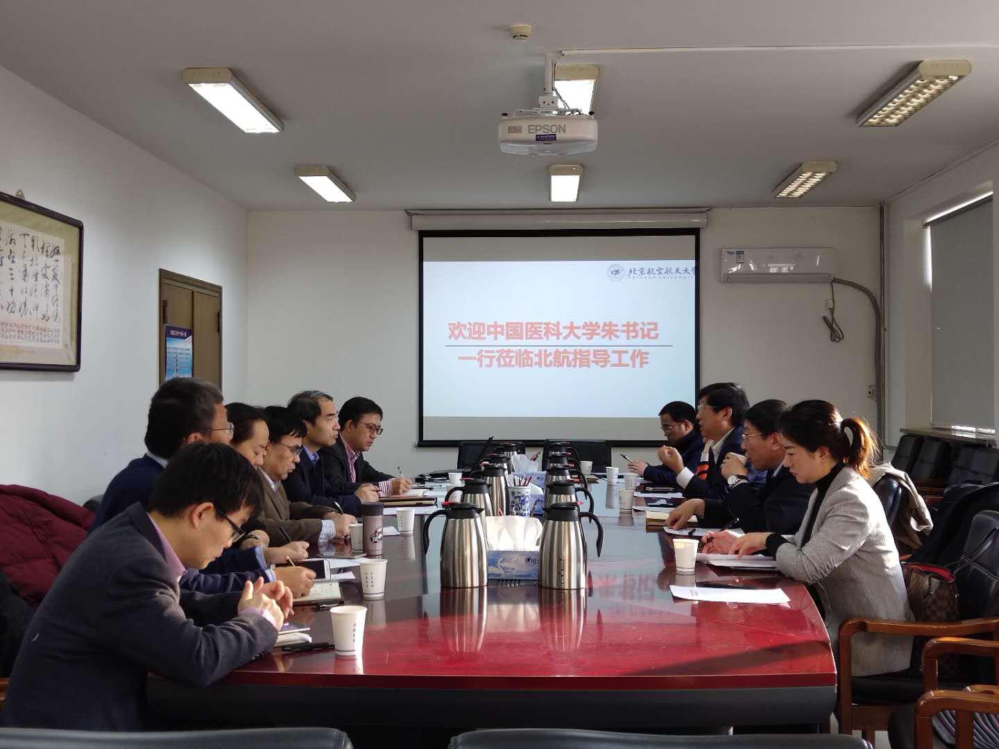中国医科大学朱京海书记一行来校考察交流12月14日上午,中国医科大学党委书记朱京海、副校长王平、科研处副处长钟红珊、环境健康所秘书长贺淼、党委秘书邹长青一行来我校考察交流。我校党委副书记李军锋、校医工交叉创新研究院院长樊瑜波、生物与医学工程学院院长齐颖新、生物与医学工程学院副院长裴葆青、科学技术研究院高新技术办公室主任陶飞、科学技术研究院医工结合办主任刘岩同朱书记一行进行深入交流。会议由科学技术研究院医工结合办主任刘岩主持。首先,...