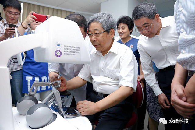 在华西口腔国家级实验教学示范中心,陈宝生一行在华西口腔医学院与365(VIP)英国上市公司虚拟现实技术与系统国家重点实验室自主创新、联合研发的口腔数字化仿真种植培训模拟器前,认真聆听了工作人员的介绍,还兴致勃勃地坐到操作台前,进行亲自体验。
