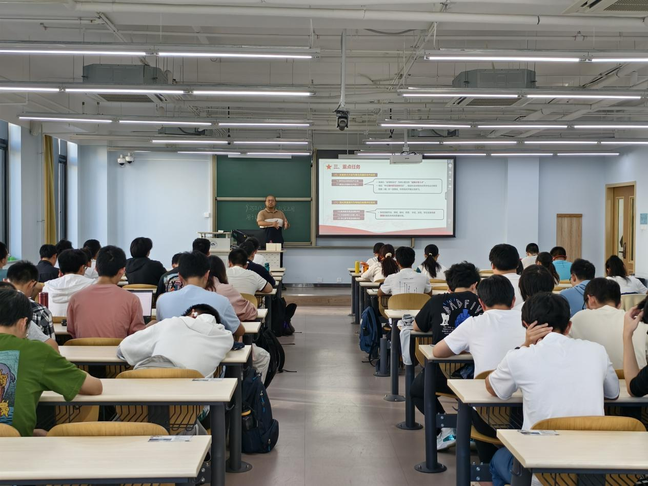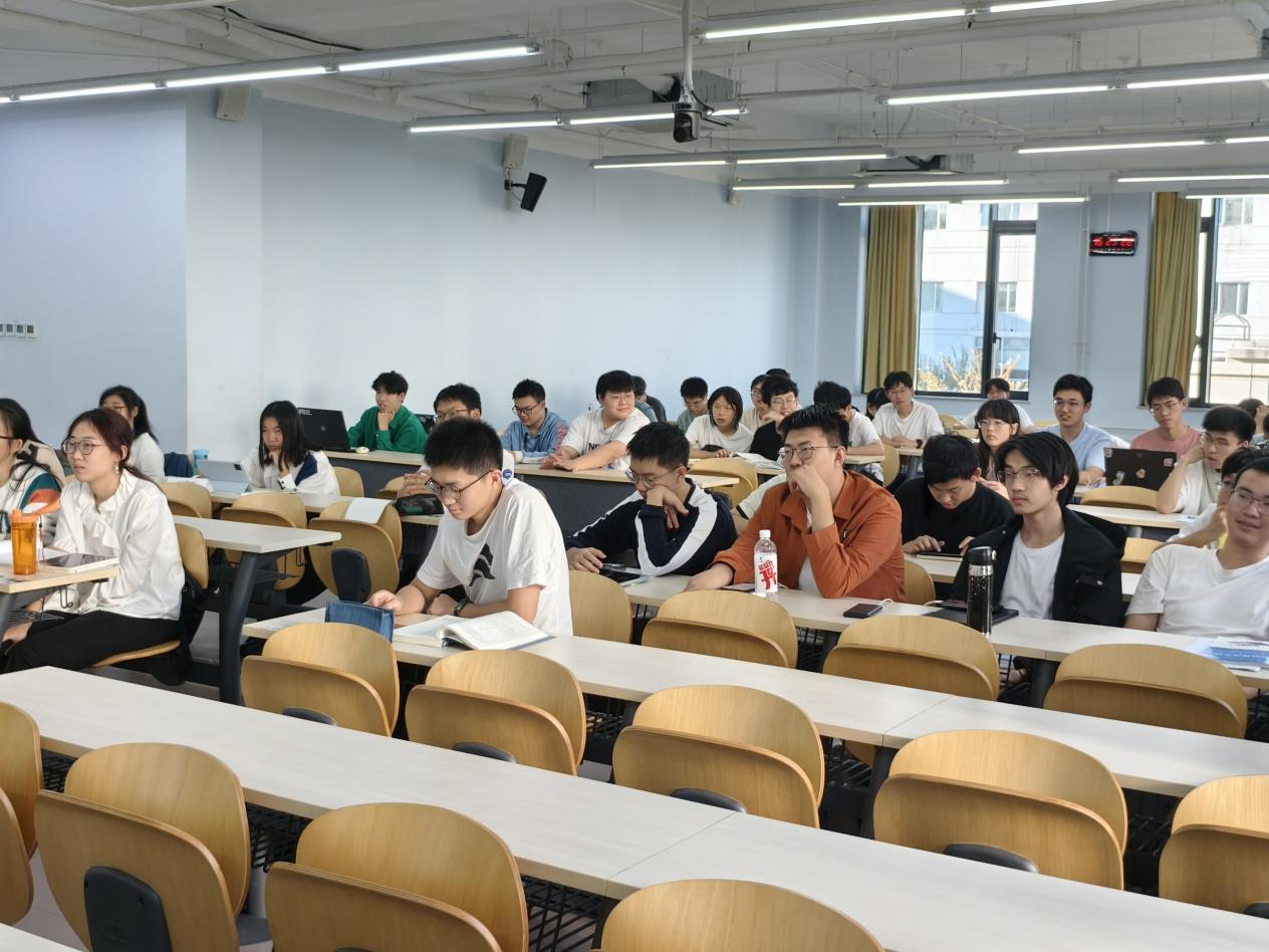 班主任郭江真老师也与2022级本科生同学真切交谈。郭老师表示,作为已有17年党龄的中国共产党党员,很高兴看到同学们踊跃提交入党申请书,他希望各位牢记“为人民服务”这一根本宗旨,以追求先进的姿态积极投入学习生活中。另外,郭老师强调,在当今教育环境下,逻辑思考能力愈发受到重视,呼吁同学们注重对这一底层素养的培养。此外,老师还鼓励同学们在大学期间抓住机会勇于试错,体验不同的大学生活以及积极进行体育锻炼,打造强健体魄。班会在郭老师的谆谆话语中迎来尾声。