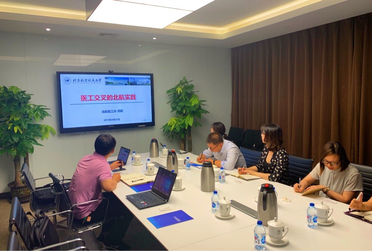 524日,北大医疗产业集团与北航医工交叉创新研究院于如心会议中心第二会议室举行洽谈交流。北大医疗党委副书记、副总裁范晶,北大医疗公共事业部总经理郭晓萌一行五人参加,北航医工结合办公室主任刘岩等出席交流会。会议由刘岩主持。