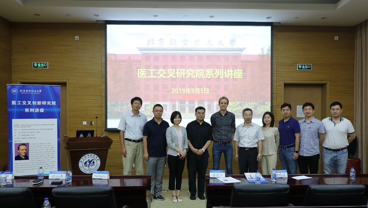 9月5日上午, 《NatureBiomedical Engineering》的主编Pep Pàmies博士来访,与北航师生进行交流。国际交流合作处处长李德玉教授主持讲座,医工交叉创新研究院院长樊瑜波教授出席,生物与医学工程学院、生物医学工程高精尖中心、大数据精准医疗高精尖中心、大数据科学与脑机智能高精尖中心及校内相关学院的教师与学生100余人聆听了报告。