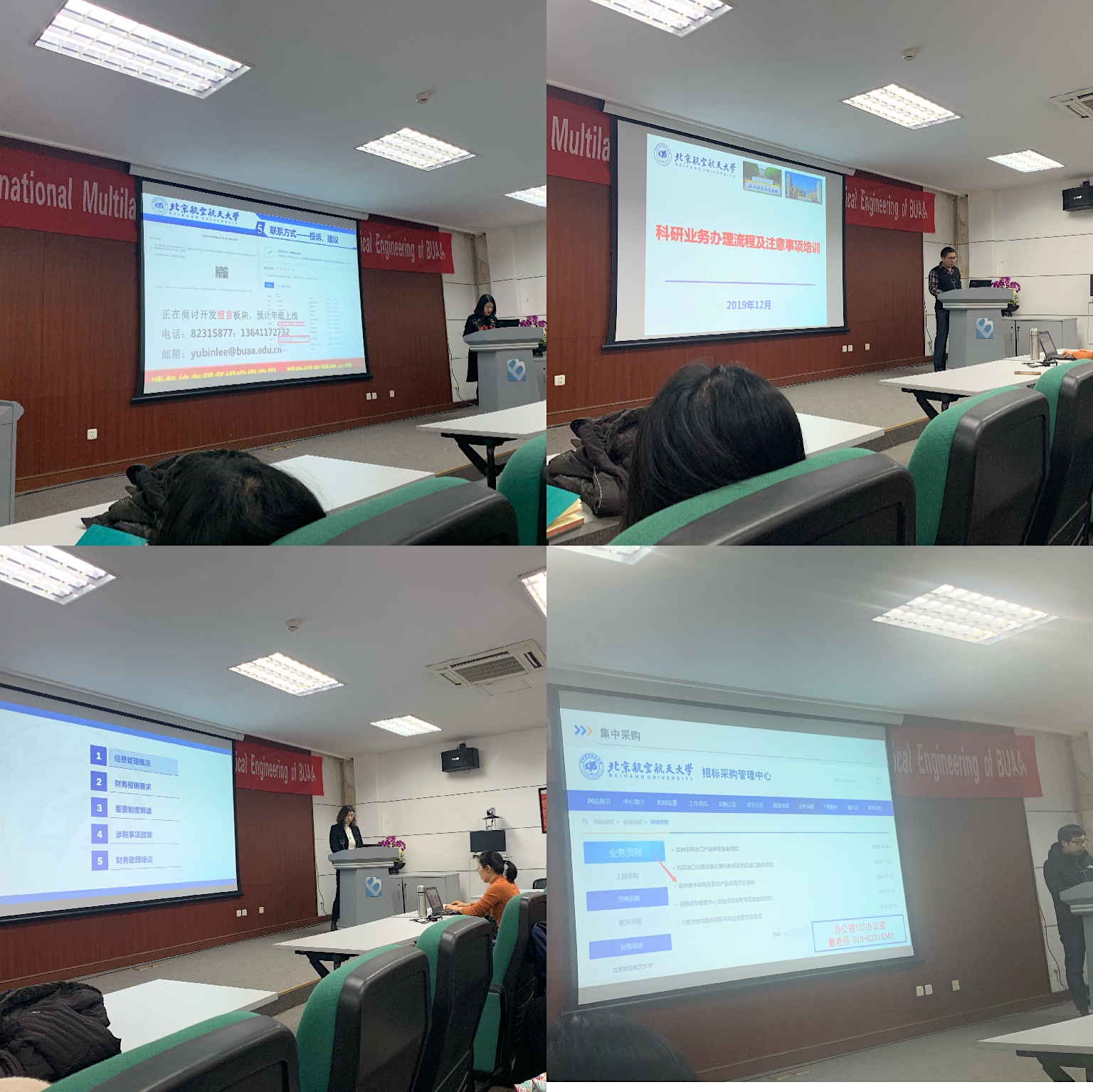 科学技术研究院、财务处、招标中心就科研项目管理流程、科研经费管理、知识产权申请及转化,招标采购管理工作等同与会人员展开详尽讲解。与会教职工就办理业务中所遇问题和老师展开现场交流。