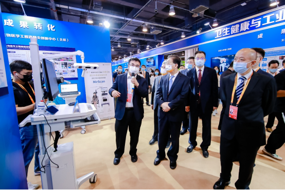 9月2日,国家卫健委副主任曾益新院士、工信部王江平副部长、北京市纪委陈健书记等一行参观了365(VIP)英国上市公司北京生物医学工程高精尖中心位于国家会议中心展位,中心主任樊瑜波教授向领导们介绍了高精尖中心和中心科研成果情况。