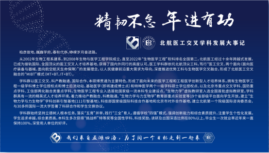 在新的历史发展阶段,北航医工不断向着建成国际化一流学科的目标坚实迈进。学科群治学严谨,秉承北航“德才兼备 知行合一”的校训,坚持高素质、具有国际视野的拔尖人才培养目标,着力培养创新型、复合型人才。