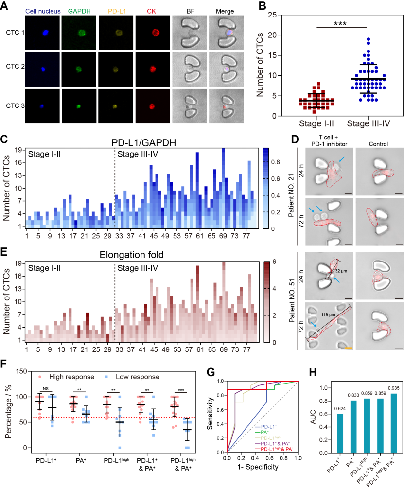 图4. 采用NICHE系统对肺癌血样中的CTCs进行捕获与分析,并实现了患者免疫治疗的精准预测